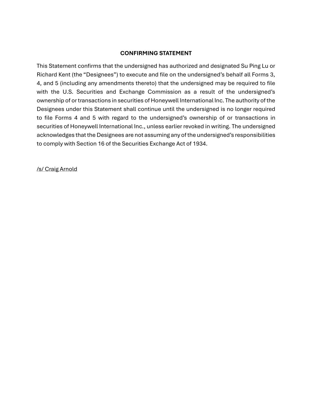 HONEYWELL INTERNATIONAL INC [ HON ] |